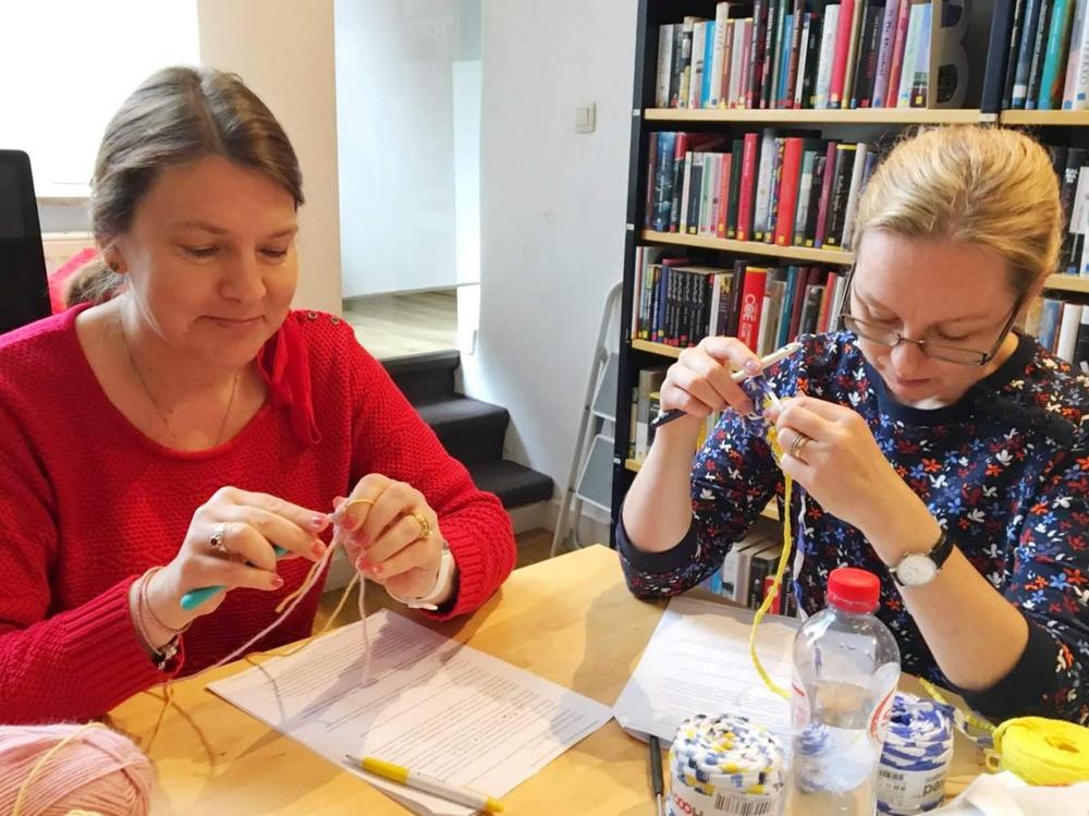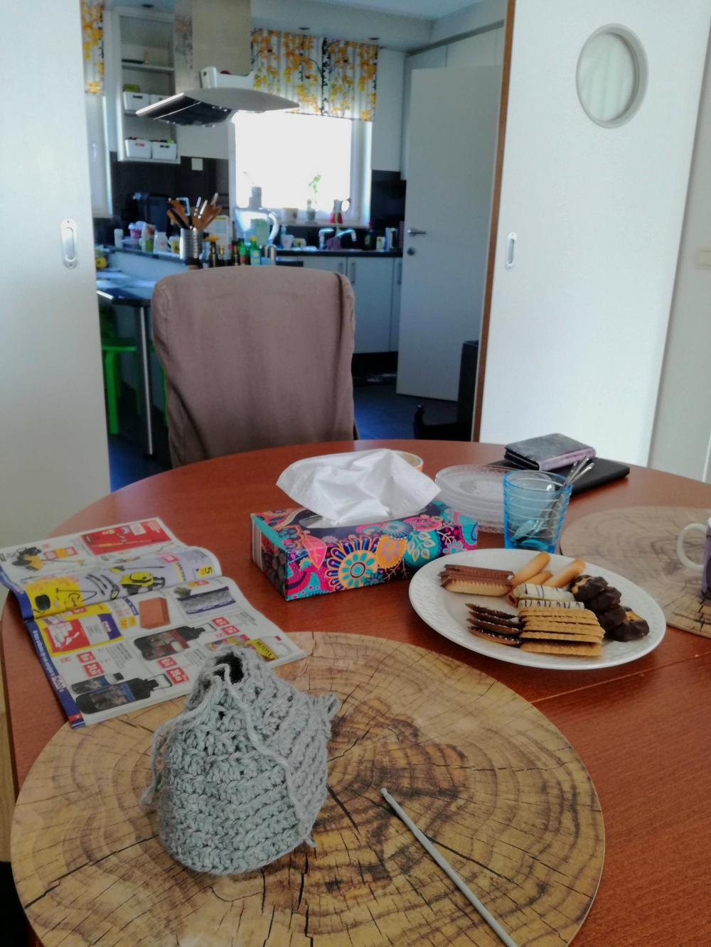 Tällä kertaa kokoonnuimme ohjaajamme Sannan kotona Etterbeekissä opettelemaan virkkausta. Neljännellä kerralla aiheenamme olivat tiskirätit.