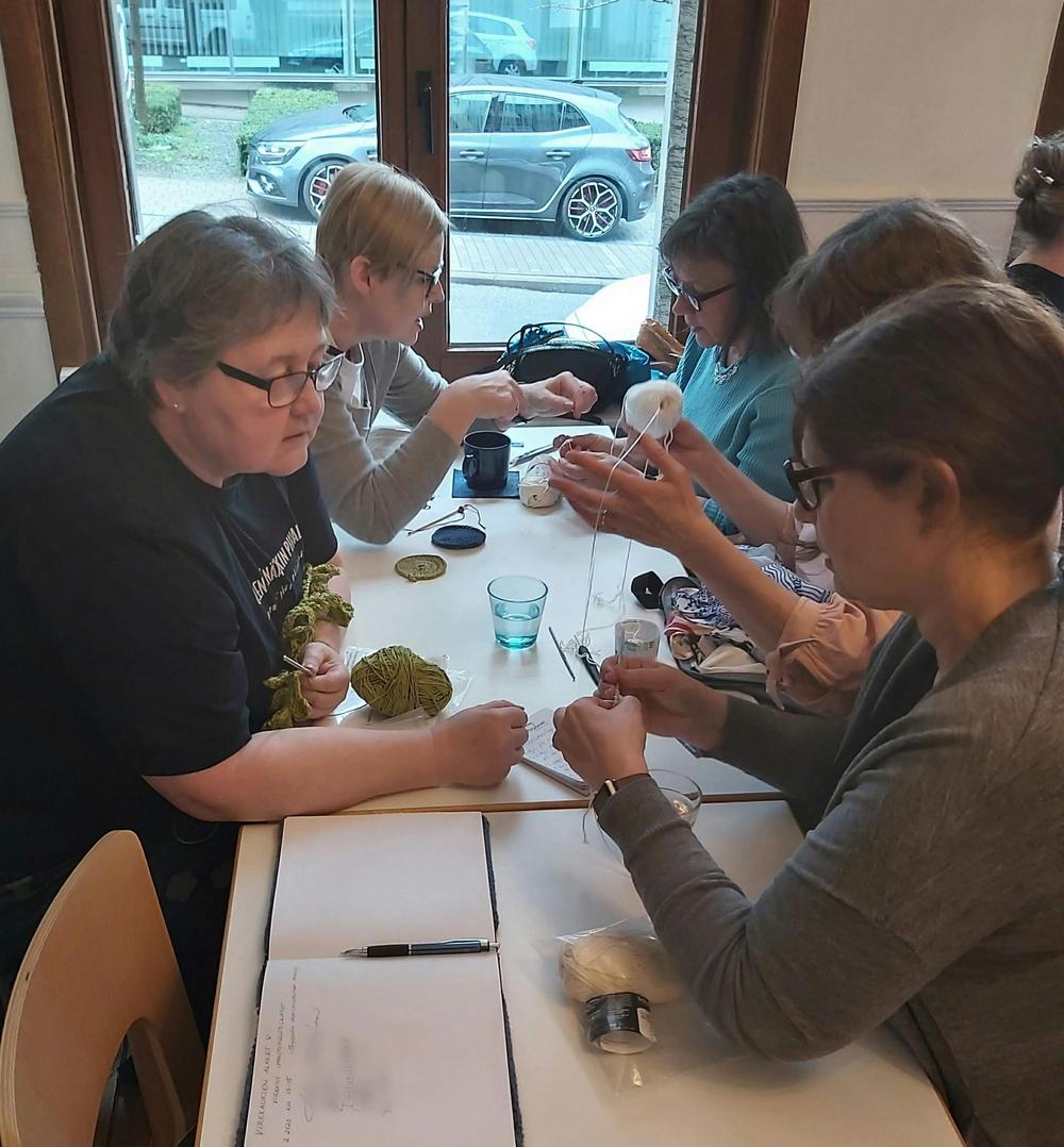 Virkkauksen alkeet V Bryssselin merimieskirkon kahvilassa 2.2.2020