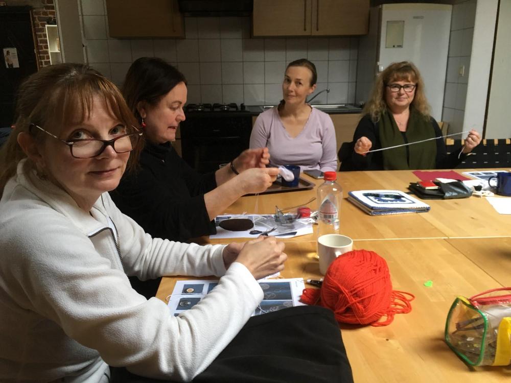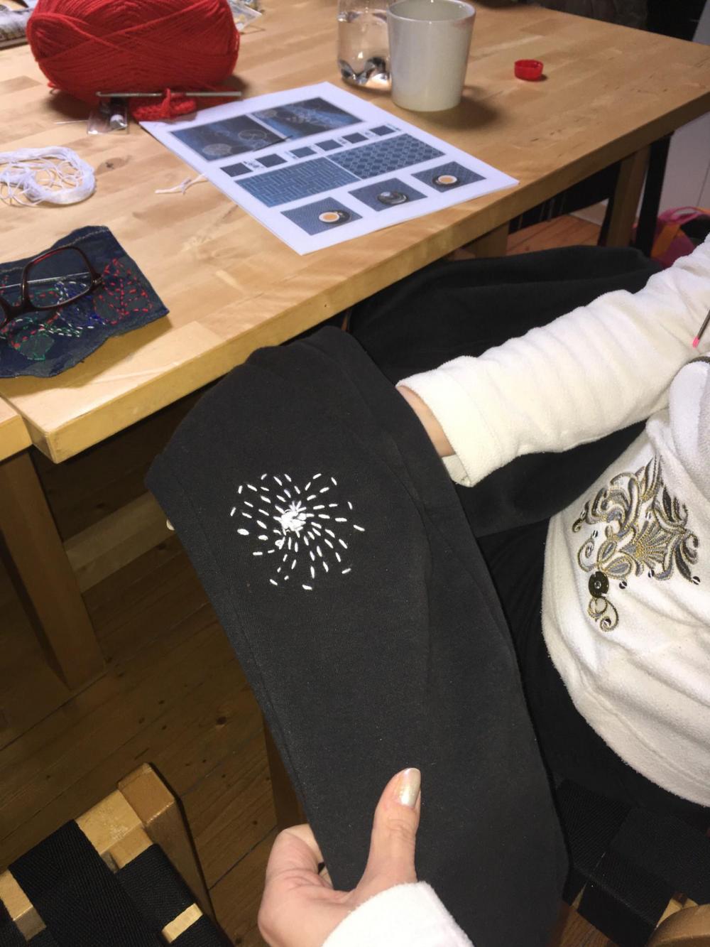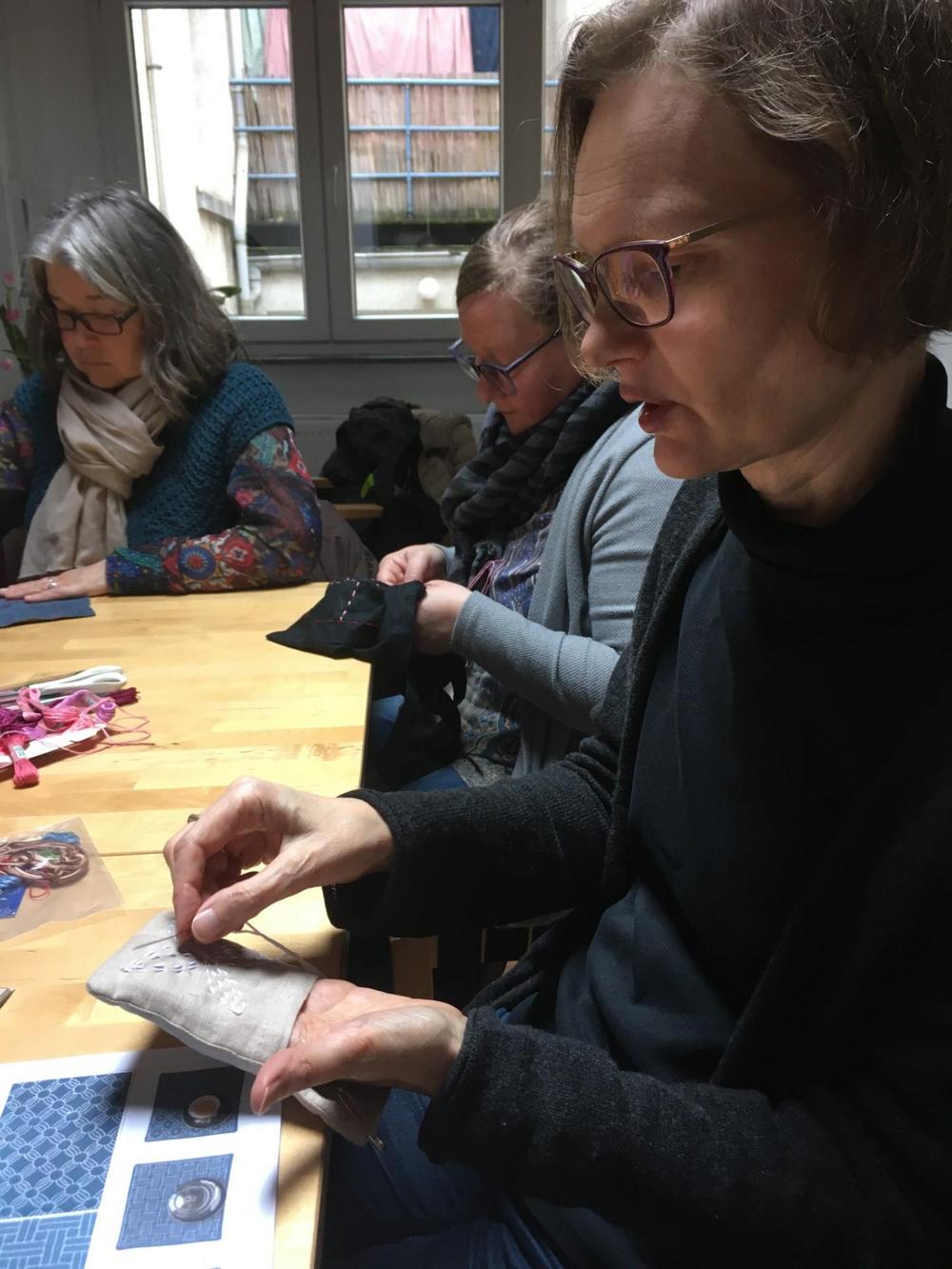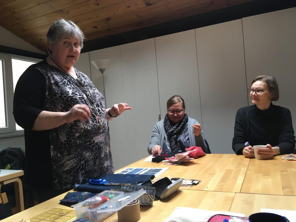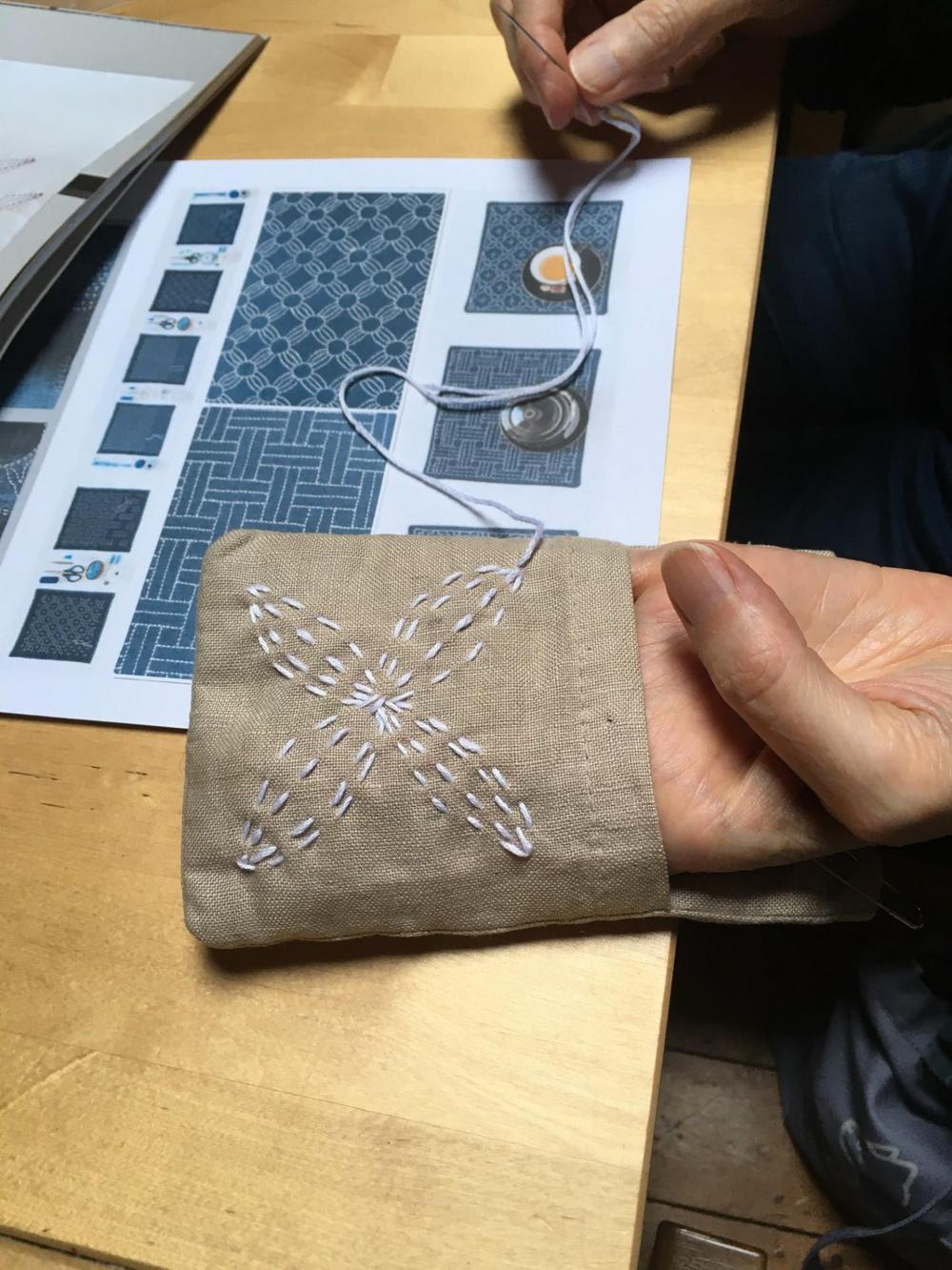 Kokoonnuimme porukalla oppimaan japanilaista Sashiko ja Boro -ompelua. Tuija-ope oli aikoinaan hakenut opit Japanista asti, joten olimme asiantuntevissa käsissä. PikkuMartta ihastutti virkkaustaidoillaan kun me muut pähkäilimme pistojen pituutta.