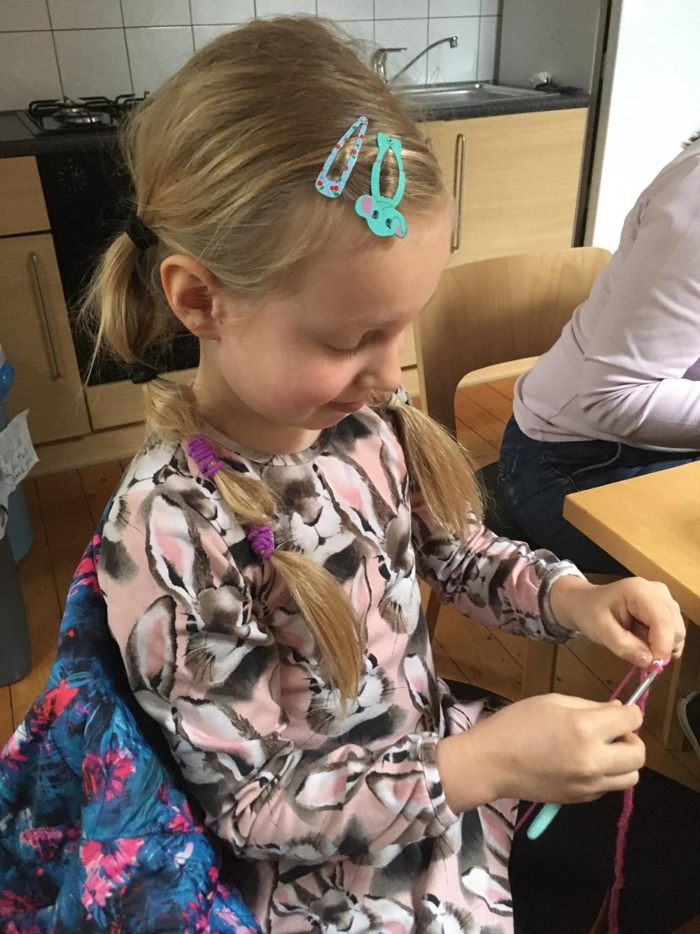 Mukana oli myös kaksi mini-Marttaa, joista toinen otti ihka ensimmäiset askeleensa neulonnassa, toinen on jo melkoinen konkari.