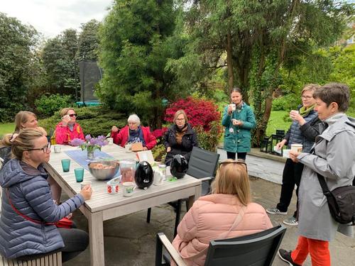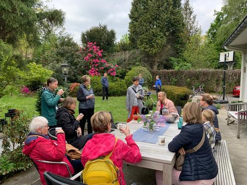 Kokoonnuimme jälleen kerran Pia Niemisen kauniissa puutarhassa kasvinvaihtopäiville. Vaihtoon pääsi kaikkea mahdollista puutarhaan liittyen: kasveja, siemeniä, ruukkuja, koristeita ja ennen kaikkea vinkkejä. Taija Toratti piti pienen viheraiheisen alustuksen maaperän terveydestä ja sen edistämisestä. Lopuksi nautimme herkulliset munkkikahvit vapun kunniaksi.