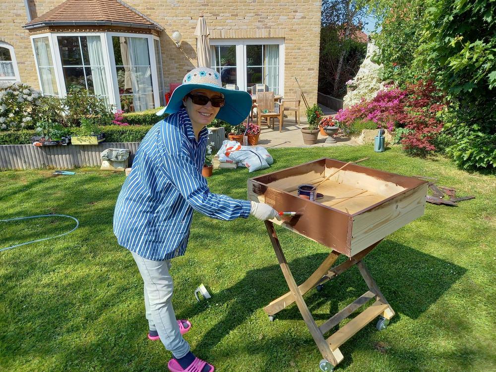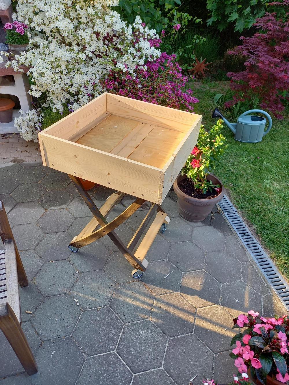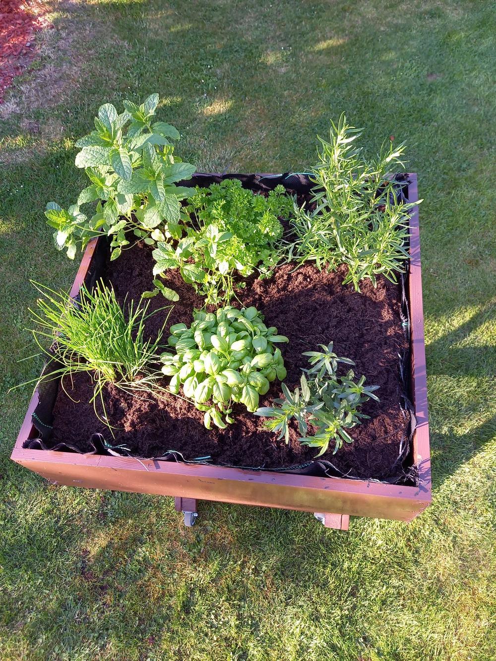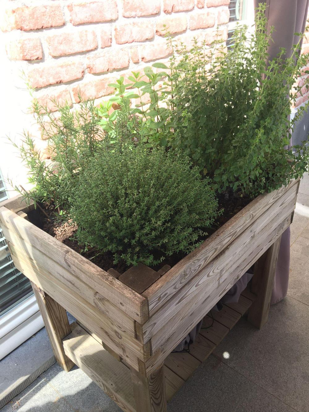 Sihteerimme Tuijan projekti: Liikuteltava ja kierrätysmateriaaleista (20 vuotta vanha puutarhapöytä) valmistettu upea viljelylaatikko. Tuijan mukaan ”lähes koko perhe innostui projektista ja työn tuloksista saadaan toivottavasti nauttia koko kesän ajan maistuvien yrttien muodossa (basilika, rosmariini, rakuuna, ruohosipuli, minttu ja persilja).”