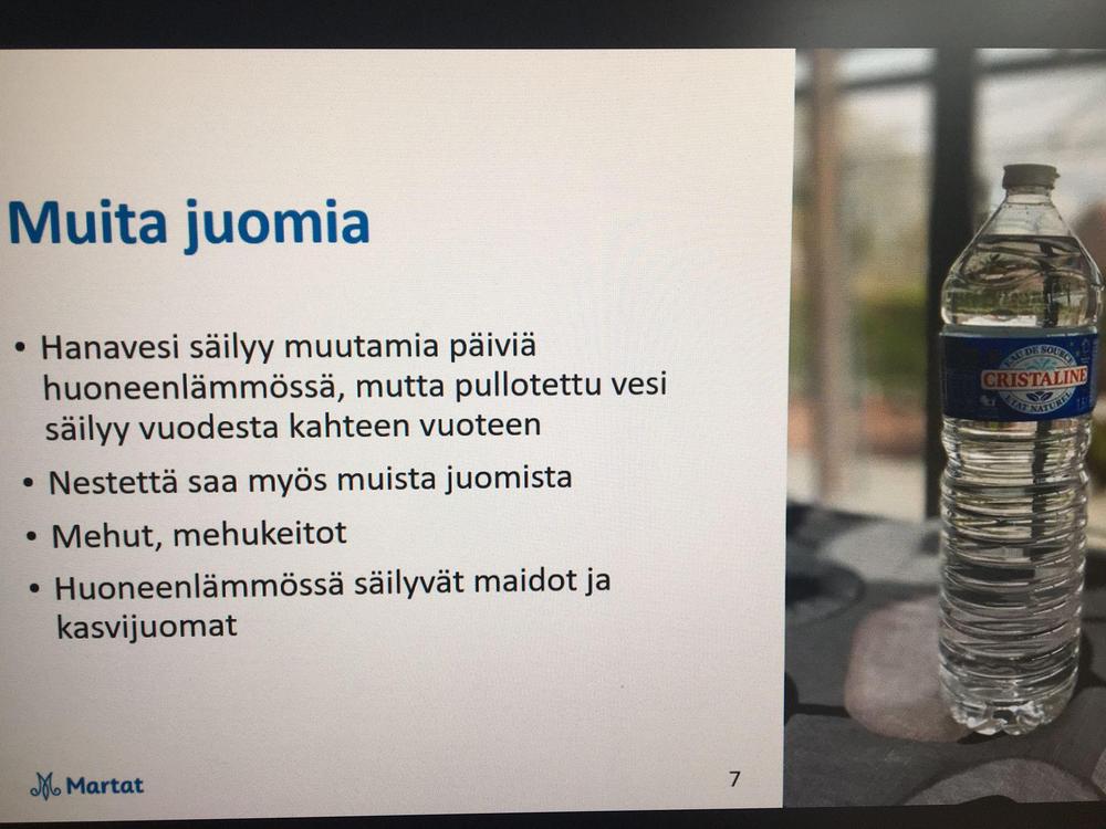 Jäsenemme Leni Blomvall piti kiinnostavan ja ajankohtaisen Kotivara-esityksen zoomin kautta. Kuulimme, mitä pitäisi löytyä jokaisesta kodista 72 tunnin ajaksi. Lista ei sisältänyt pelkästään ruokaa, mutta myös lääkkeitä, paristoja, pattereilla toimivan radion, käteistä rahaa, ruokaa eläimille ja tärkeimpänä vesi.