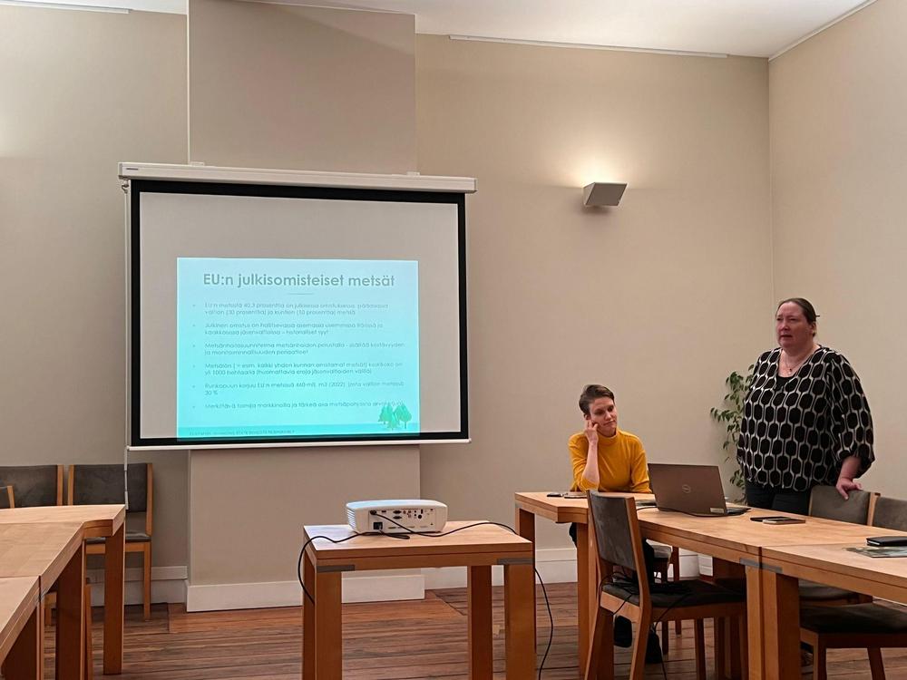 Marttojen metsävuosi päättyi, mutta metsien merkitys koko maailmassa, Euroopassa ja Suomessa ei vähene. Belgian Marttojen vuoden 2025 tutustumistilaisuudet alkoivat hienosti mielenkiintoisella ja monipuolisella Metsäillalla. Reilut 10 innokasta marttaa saapui Euroopan metsätalolla (European Foresty House), jossa Alina Lehikoinen kertoi Euroopan metsänomistajien liiton (The Confederation of European Forest Owners CEPF) toiminnasta ja oma marttamme Ann-Mari Kuparinen esitteli puolestaan Euroopan metsähallitusten edunvalvontajärjestön EUSTAFORin toimintaa. Mielenkiintoisten metsäfaktojen lisäksi keskustelimme ilmastonmuutoksen vaikutuksesta metsien kasvuun ja hiilinieluun sekä kaupunkilais-metsänomistajien määrän kasvusta. Samalla ihailimme valtavista ikkunoista avautuvaa todella upeaa ilta-auringon värittämää maisemaa suoraan parlamenttitalolle.