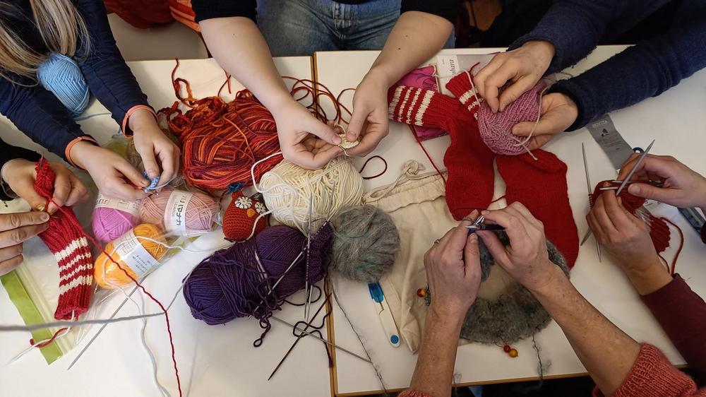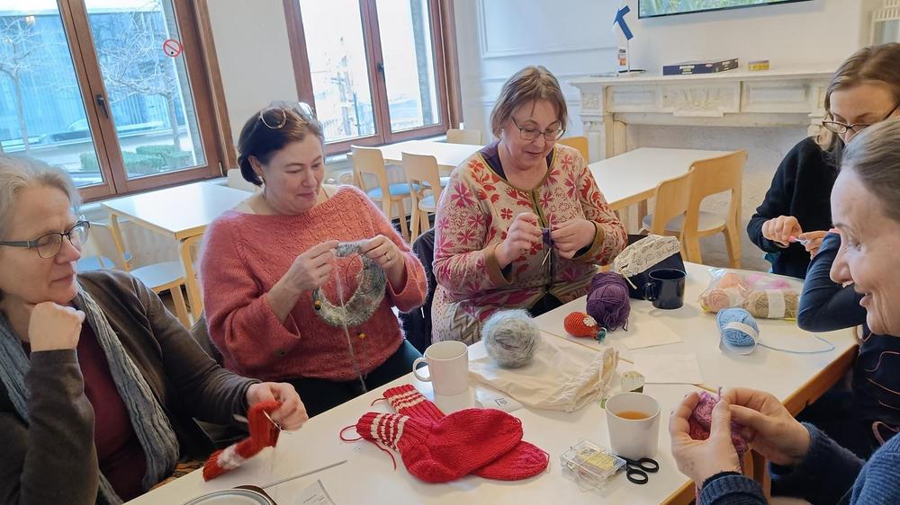 Kässämarttojen vuoden ensimmäisessä tapaamisessa Merimieskirkolla viuhuivat tänään niin sukkapuikot, virkkuukoukut, pyöröpuikot kuin myös parsinneulat.