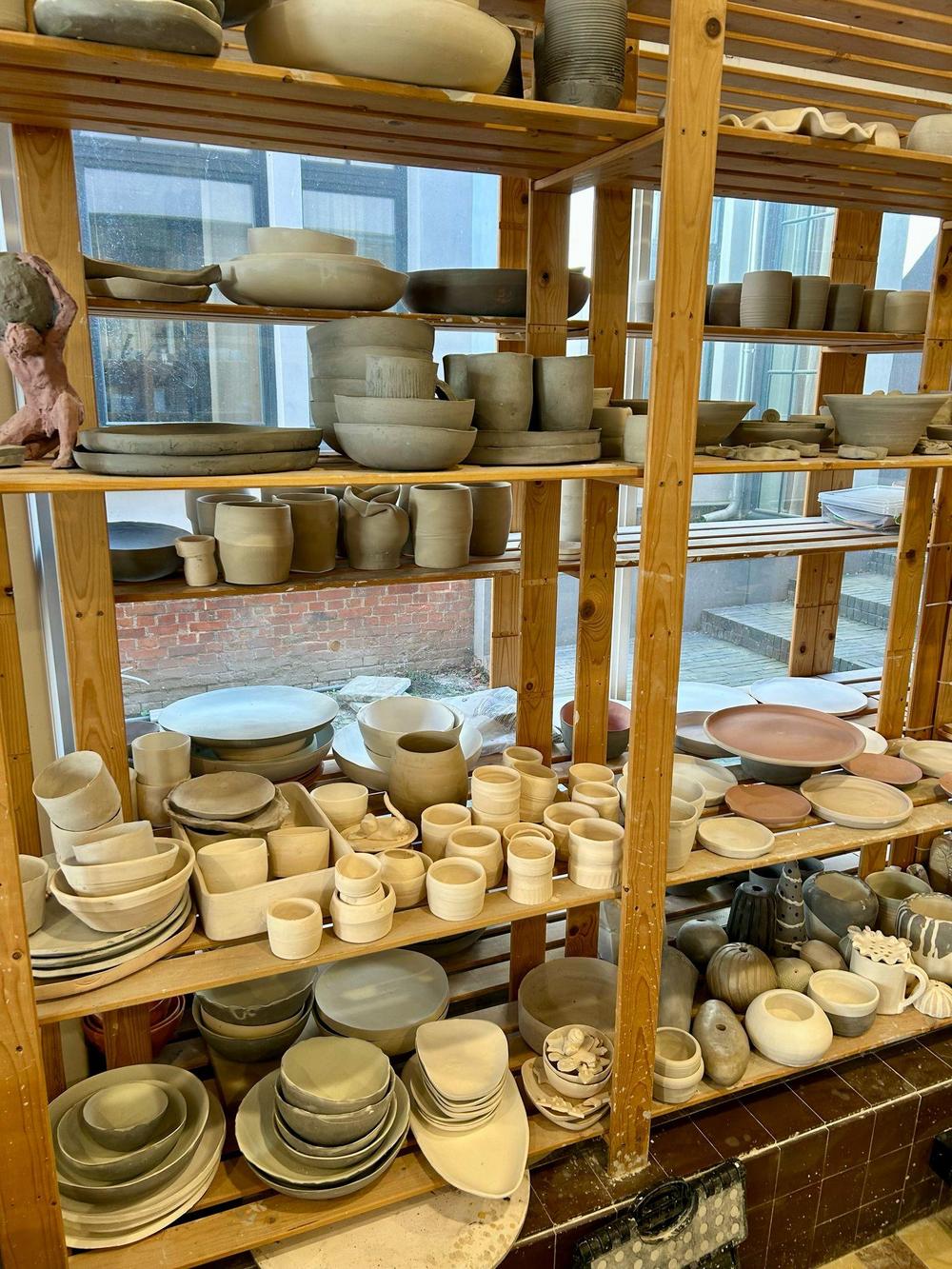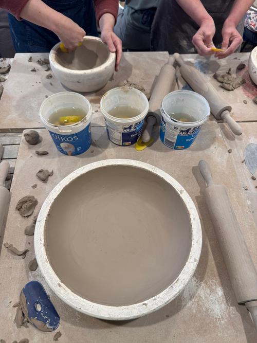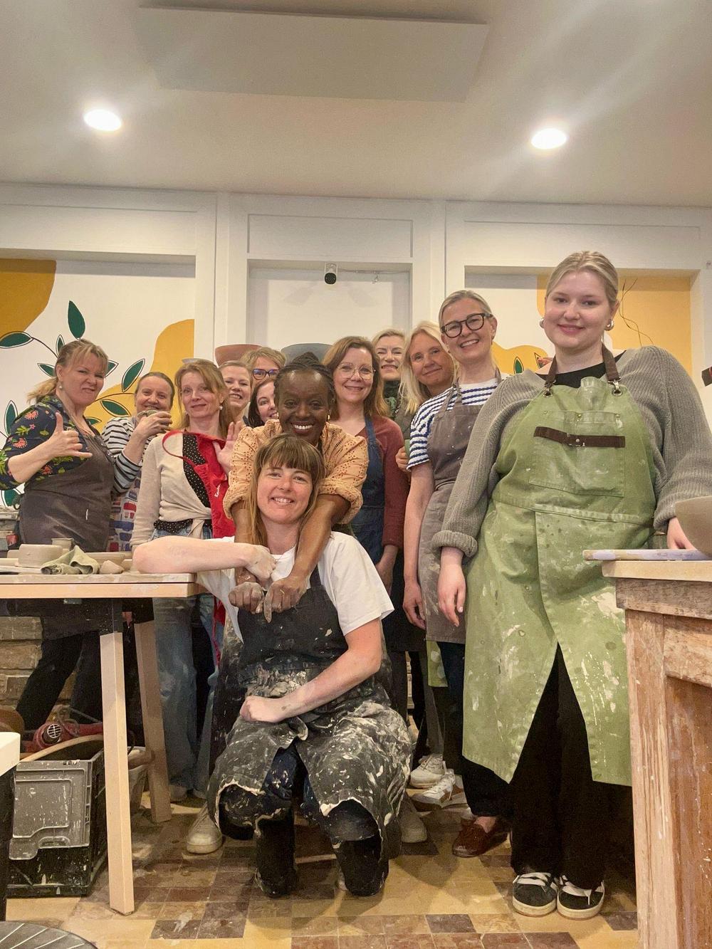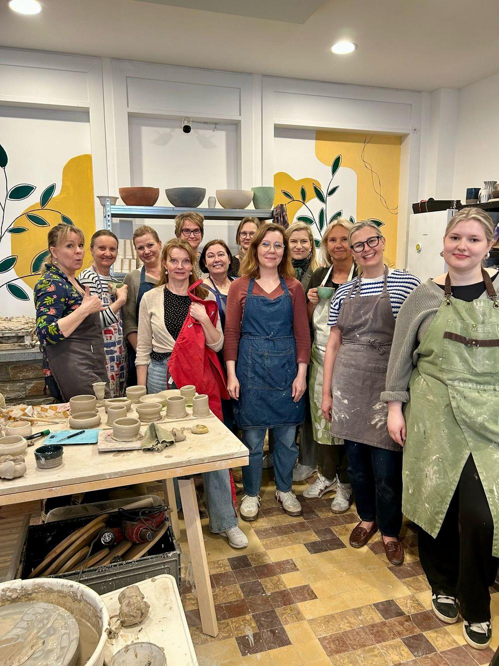 Belgian Marttojen keramiikkakurssilla dreijat ja muotit olivat ahkerassa käytössä. Asiantuntevan opastuksen ansioista kuppien ja kulhojen muotoilu sujui kuin leikki mukavassa hengessä. Oli ilo oppia uutta.