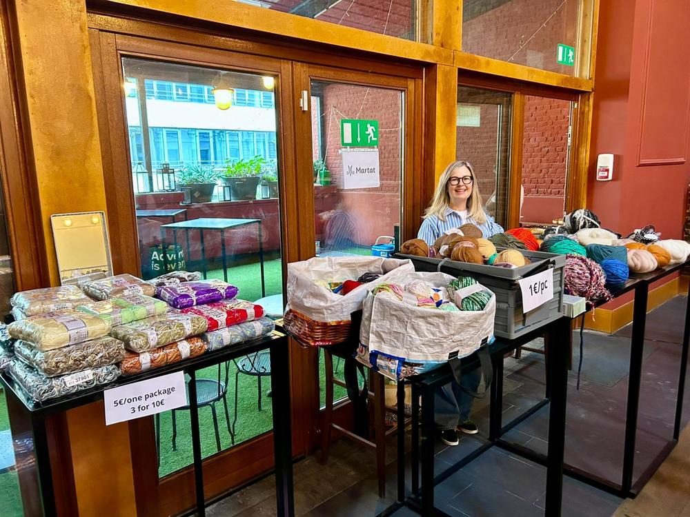 Marttojen pöydässä oli tarjolla paljon lankatarjouksia: Lankakeriä ja paljoustarjouksia. Myimme myös kehrättävää villaa, matonkuteita ja suuria merinovillakeriä.