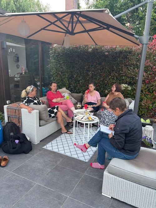 Kymmenen marttaa kokoontui keskiviikkona saunomaan, grillaamaan ja viettämään kesäistä iltaa Overijseen Nina Tuhkunen-Vogelsin luo. Vehreä ympäristö ja pehmeät löylyt veivät kotimaan suven tunnelmiin. Jutusteluissa tuon tuostakin nousi esille Euroviisut ja omat suosikit. Grillissä paistuivat maissit, makkarat ja katkaravut, ja herkullisen aterian päätteeksi martat pääsivät vielä kisaamaan sauna- ja Euroviisuaiheisessa tietokilpailussa. Kaikki joukkueet saivat lisäpisteen hienoista Bara bada bastu -muuveista. Suurkiitos Ninalle emännöinnistä!
