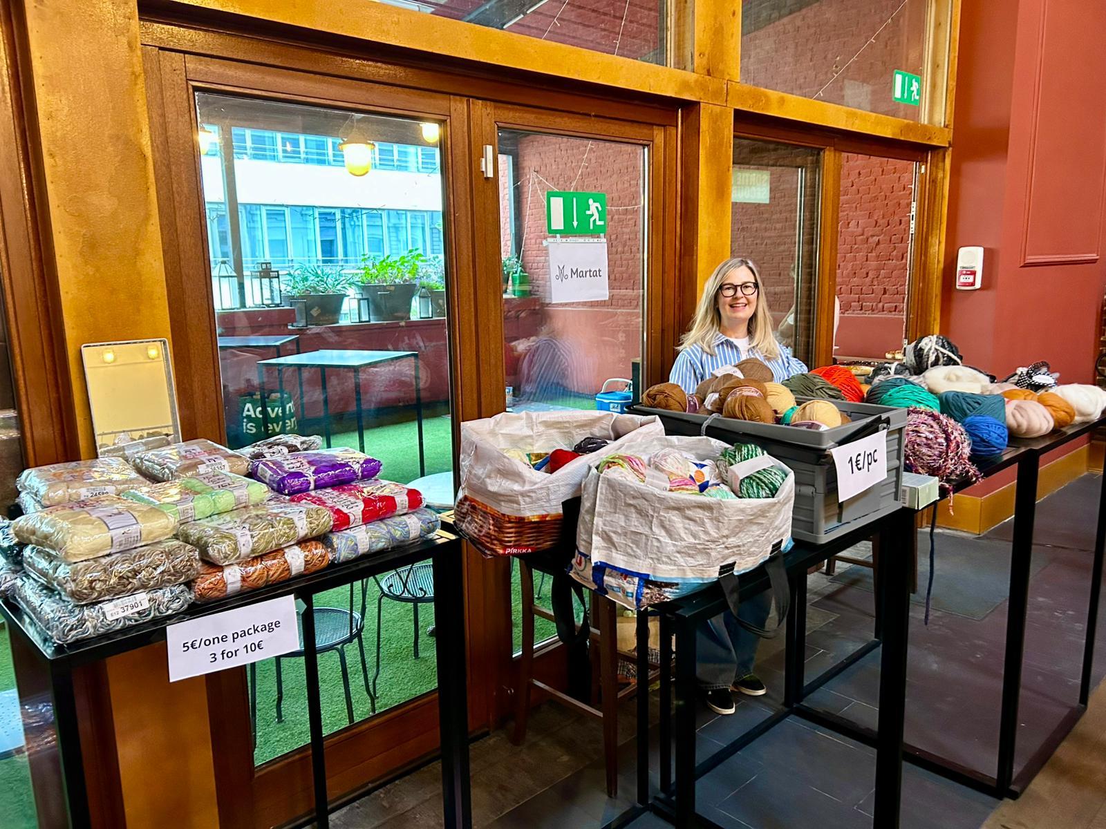 Marttojen pöydässä oli tarjolla paljon lankatarjouksia: Lankakeriä ja paljoustarjouksia. Myimme myös kehrättävää villaa, matonkuteita ja suuria merinovillakeriä.
