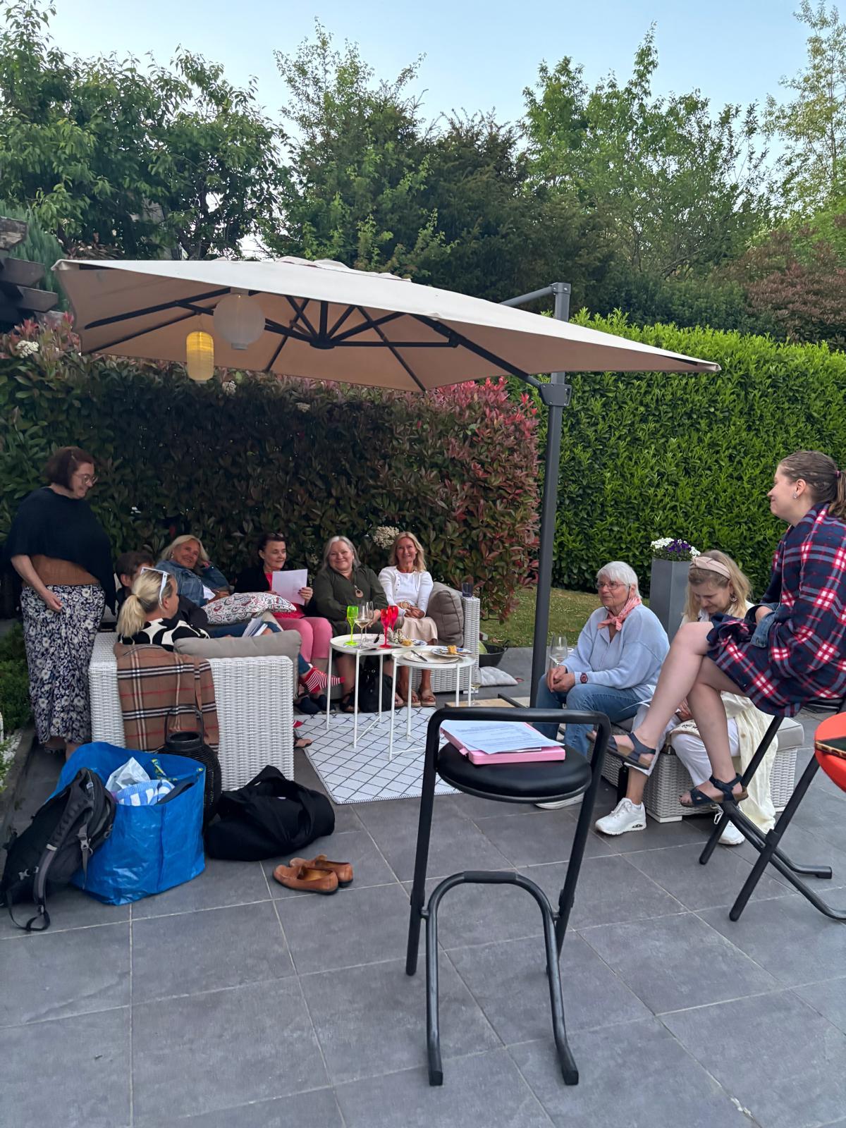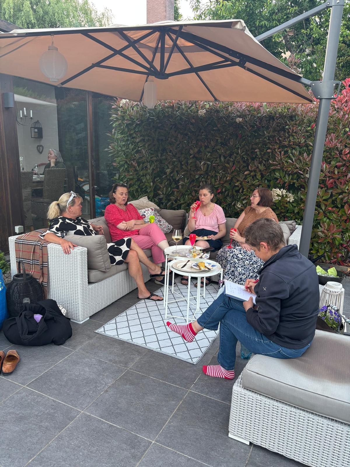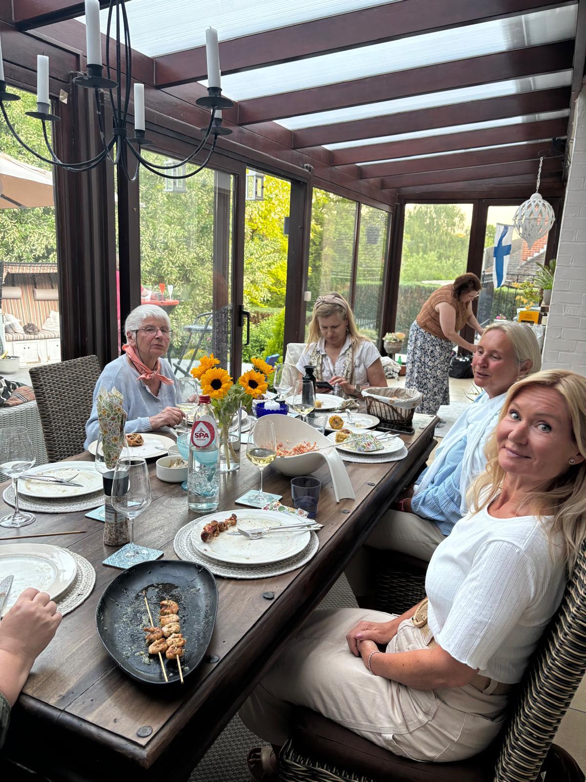 Kymmenen marttaa kokoontui keskiviikkona saunomaan, grillaamaan ja viettämään kesäistä iltaa Overijseen Nina Tuhkunen-Vogelsin luo. Vehreä ympäristö ja pehmeät löylyt veivät kotimaan suven tunnelmiin. Jutusteluissa tuon tuostakin nousi esille Euroviisut ja omat suosikit. Grillissä paistuivat maissit, makkarat ja katkaravut, ja herkullisen aterian päätteeksi martat pääsivät vielä kisaamaan sauna- ja Euroviisuaiheisessa tietokilpailussa. Kaikki joukkueet saivat lisäpisteen hienoista Bara bada bastu -muuveista. Suurkiitos Ninalle emännöinnistä!